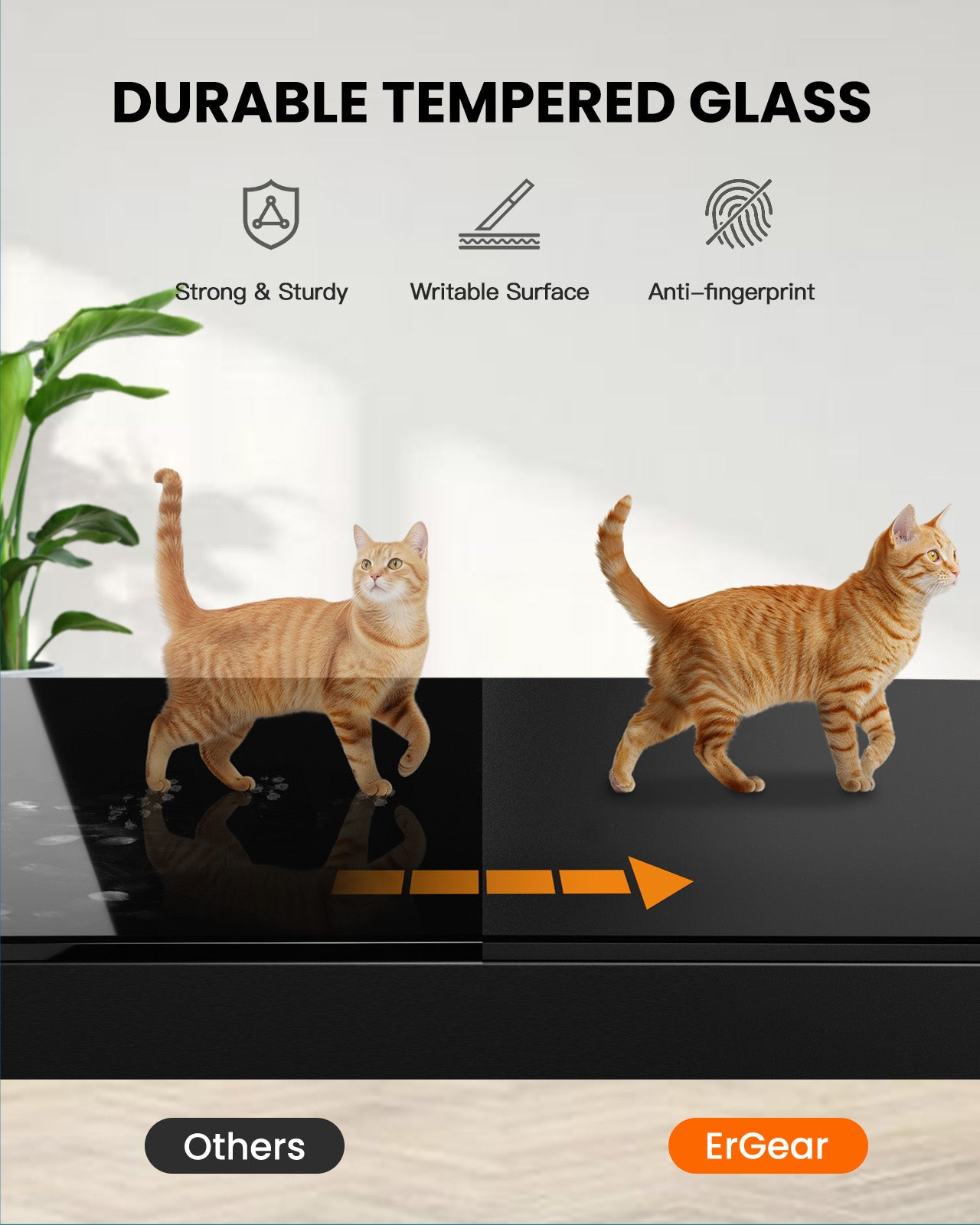 ErGear One-Piece Top Glass Standing Desk with Drawer