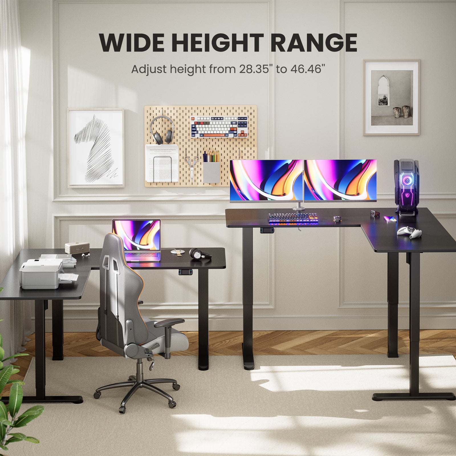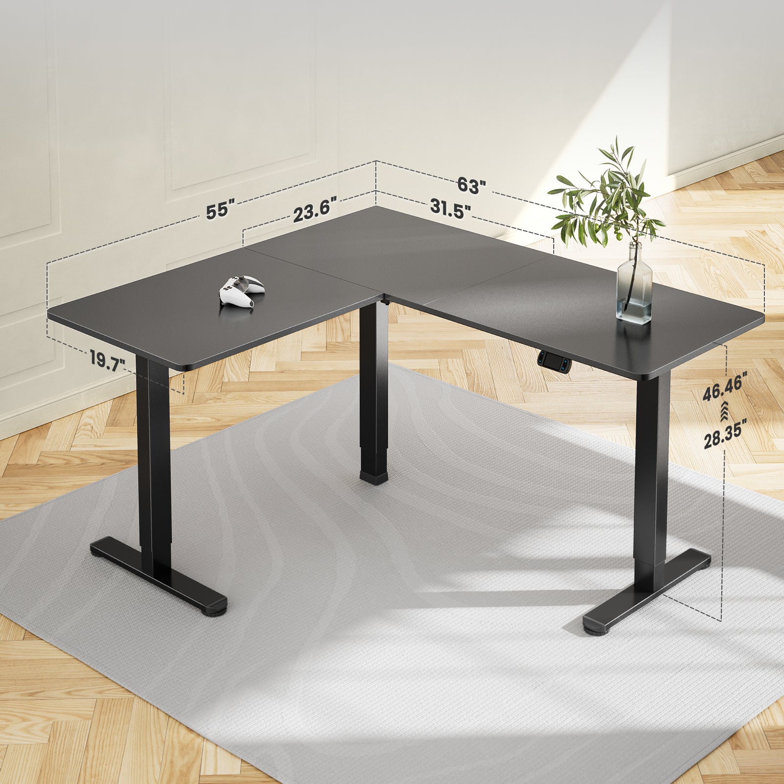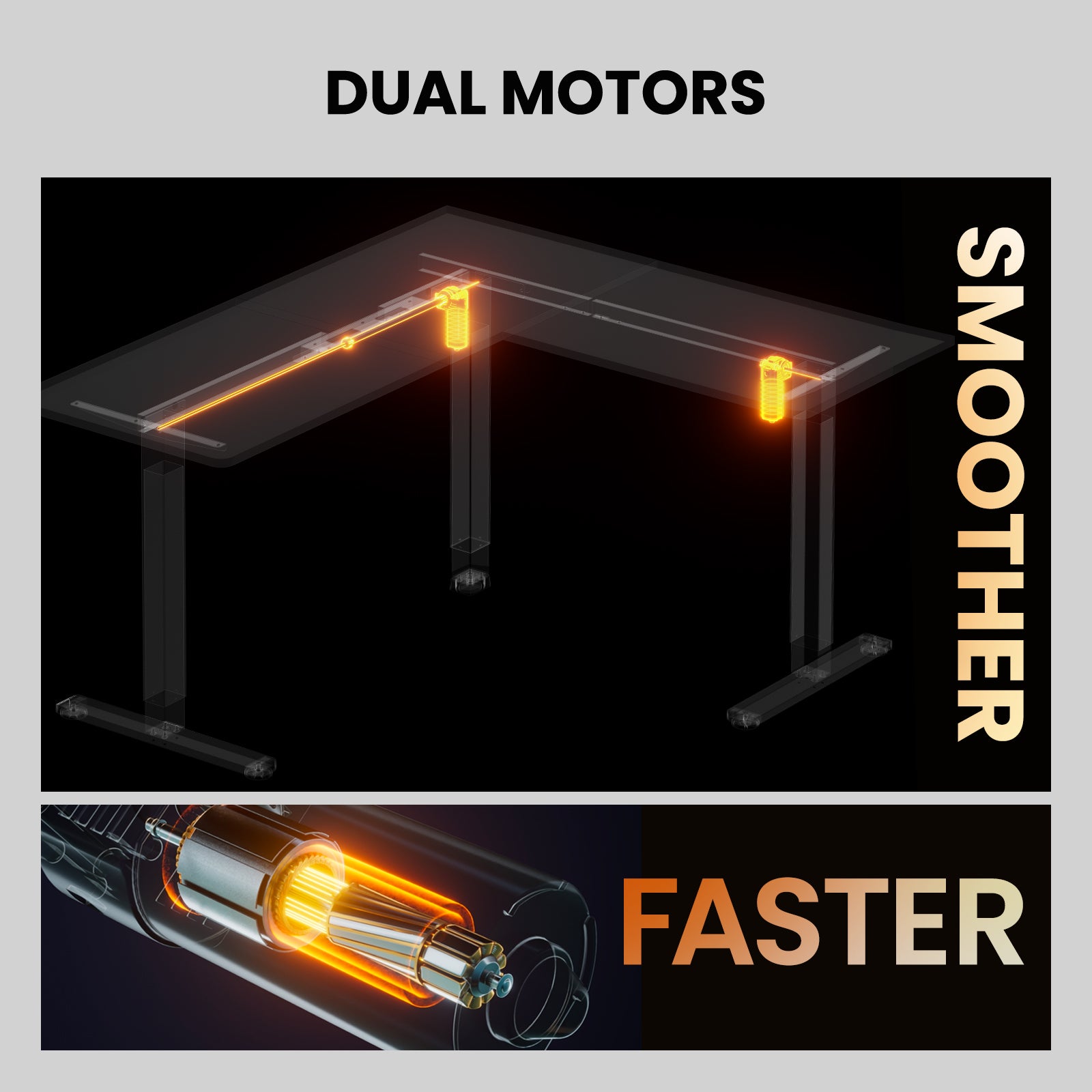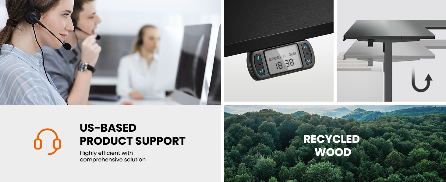 Detects obstructions and rebounds to avoid damage to the desk and other objects